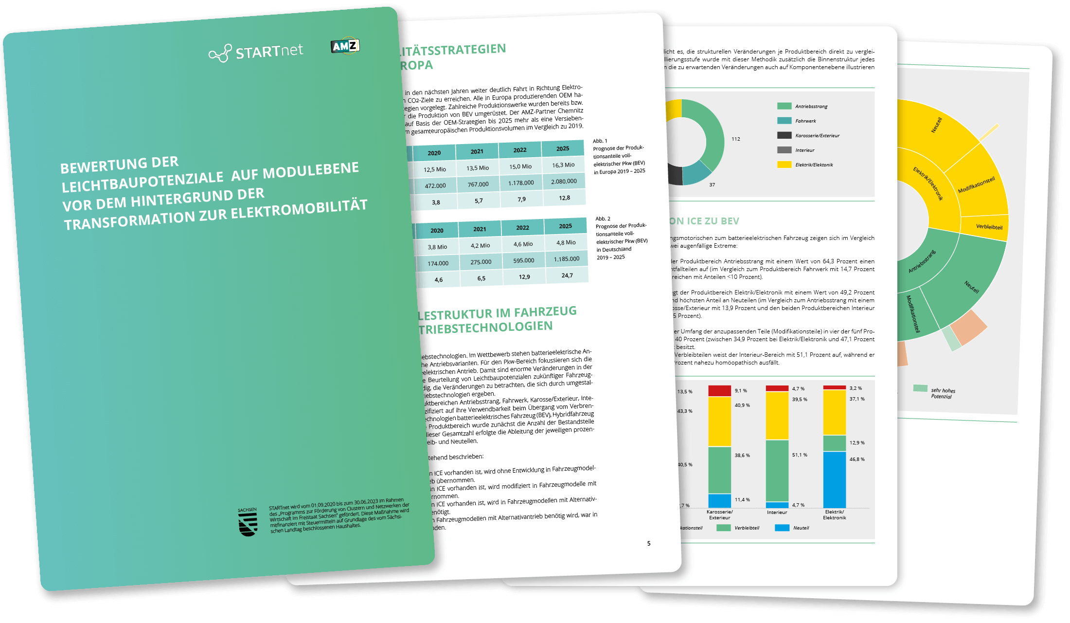 Die Transformation zur Elektromobilität bringt insbesondere für KMU neue Chancen und Herausforderungen mit sich. Während eine große Zahl an etablierten Bauteilen bei Elektroantrieben entfallen, sind an anderer Stelle Anpassungen und Neuentwicklungen vorzunehmen. Zur strategischen Bewertung der Marktsituation hat das sächsische Automobilzuliefernetzwerk AMZ in Zusammenarbeit mit dem Kooperationsnetzwerk STARTnet die konstruktiven und materialbezogenen Leichtbaupotenziale von rund 300 Fahrzeug-Baugruppen untersucht.
