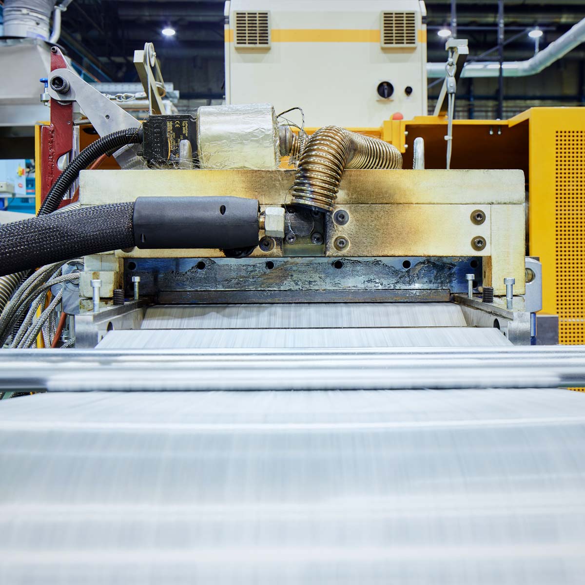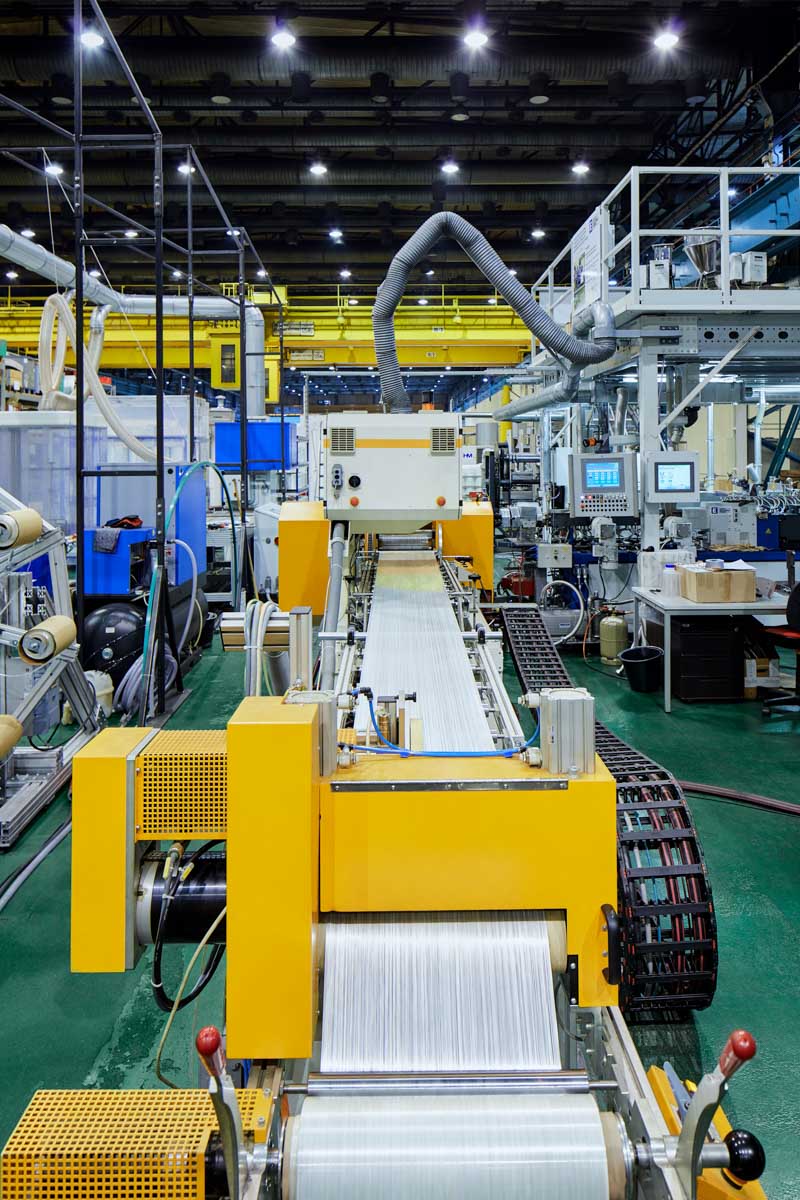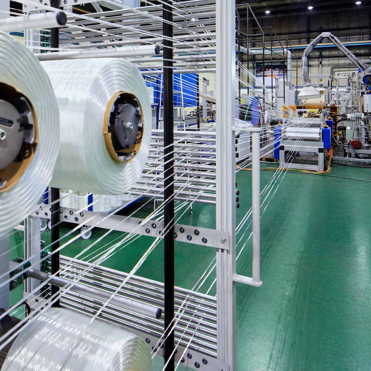 Außerdem kann der OMEGA-Imprägnierkalander auch als Stand-alone-Modul betrieben werden. Diese Konfiguration bezieht sich auf die Verarbeitung von hybriden textilen Flächengebilden, d. h. wenn die thermoplastische Matrix bereits Bestandteil der textilen Verstärkungsstruktur ist.