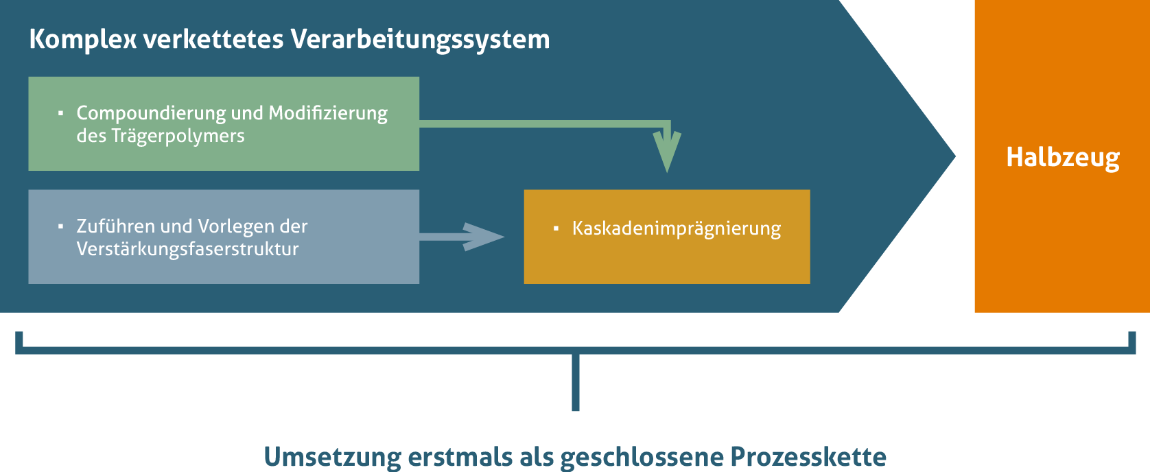 Im thermoPre®-Prozess werden die bisher separierten Prozessstufen zu einem einstufigen Direktverarbeitungssystem zusammengefasst. Damit erreicht man eine deutliche Senkung der Herstellungskosten und letztendlich auch der Halbzeugkosten.
